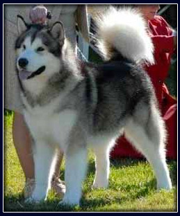 Blitzen is a show dog, working dog, wonderful producer, and our awesome companion! In the breed ring, he finished his Championship easily, and is campaigned as a Special by Roseann, always breeder-owner-handled. Blitzen has always been in the Top ranked Malamutes in the USA when being campaigned, including being a Top Twenty participant for two years, and #1 Mid East Area Special, and proved himself in all-breed competition as well, being a Multiple Group Winner and Multiple Group Placer.